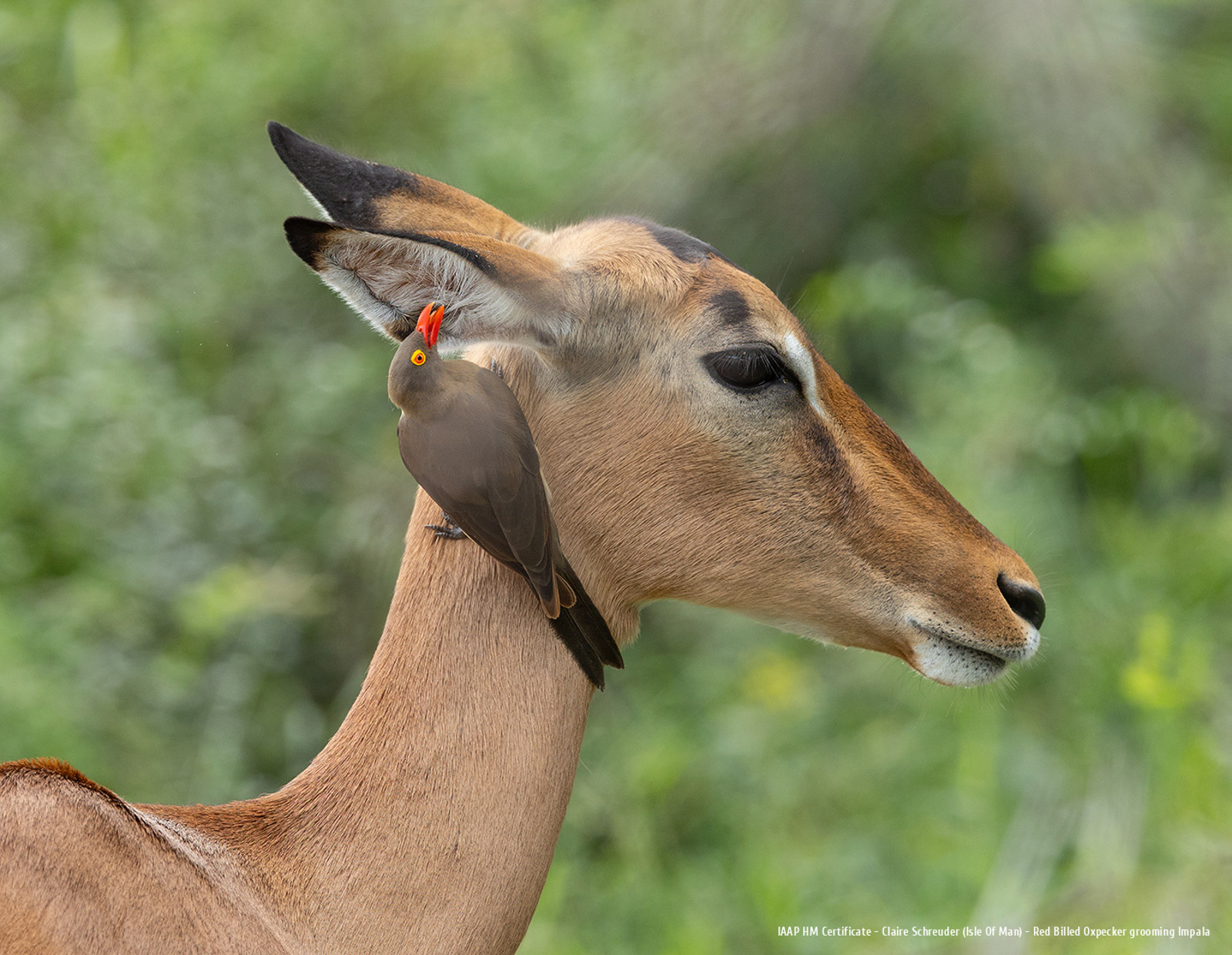 Red Billed Oxpecker grooming Impala